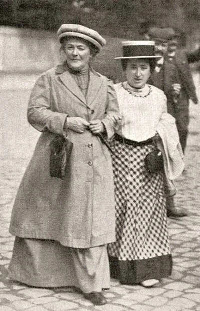 Вот они, две подруженьки - Розочка Люксембург (псевдоним) и Кларочка Цеткин (Фамилия мужа, та что повыше) :) Дамы были активные, с позицией! У Розочки, пишут, потом даже роман с сыном Кларочки был. Врут, наверняка. Но женщины - огненные)